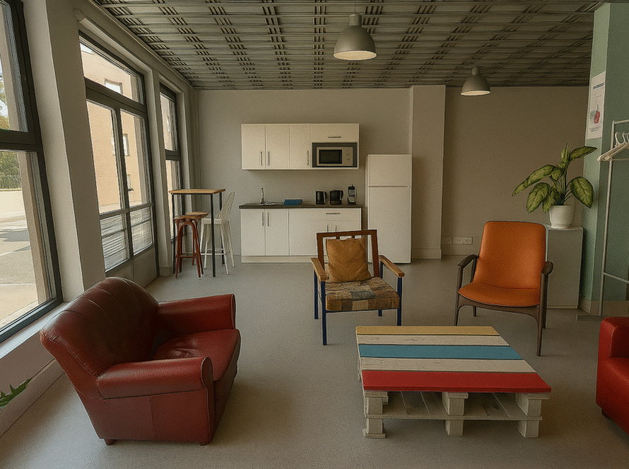 - Sala de coworking (puestos de trabajo individuales en amplia sala compartida)Â