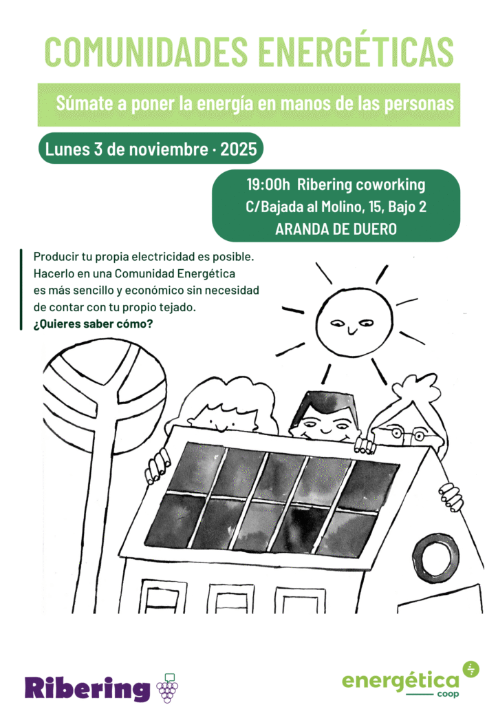 Ven el próximo lunes 3 de noviembre (19 horas) a la charla que ofrece ENERGÉTICA.COOP, una cooperativa de economía social sin ánimo de lucro, que quiere producir y consumir electricidad de manera justa, ética y sostenible. Energética está impulsando comunidades energéticas en toda Castilla y León.