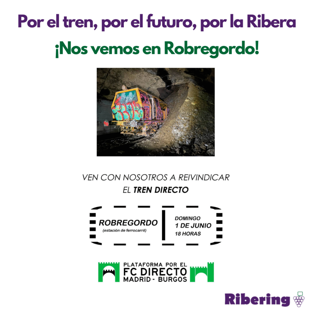 Este domingo 1 de junio de 2025, estaremos en Robregordo, con muchos arandinos y arandinas más, reivindicando lo que es nuestro: la reapertura inmediata del ferrocarril directo Madrid – Aranda – Burgos que nos quitaron en 2011.